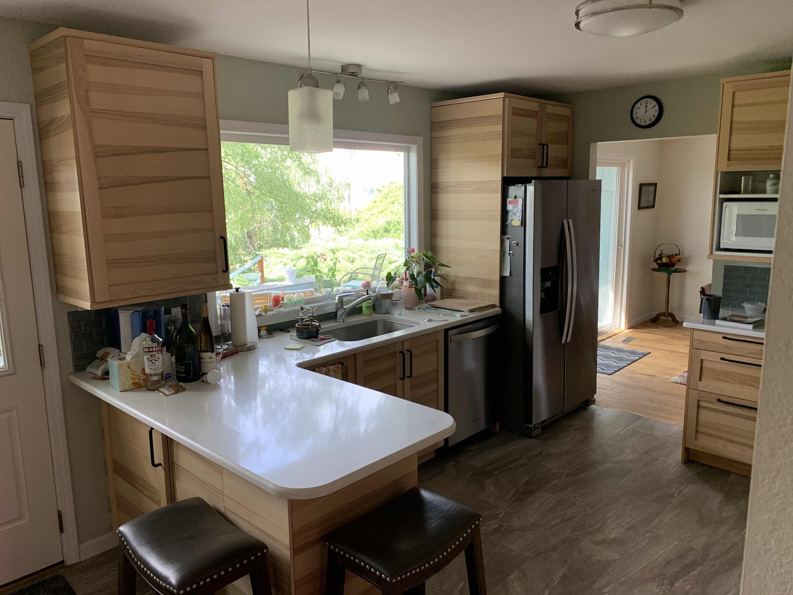 The customer chose Silver Maple Trex decking instead of natural wood, mostly for the guaranteed longevity. And it was the right choice. Looks nice.